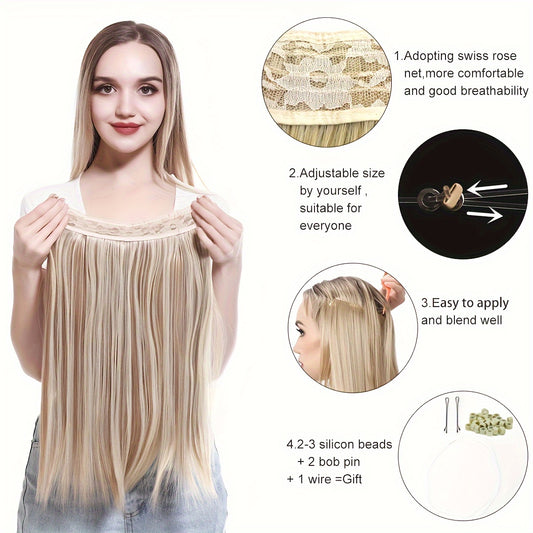Seamless Invisible Wire Hair Extensions - 4 Sizes, Multiple Colors, High-Temperature 100% Synthetic Fiber, Straight, Comfortable Fit, Easy-to-Apply, No-Trace Integration with Fishing Line for Women