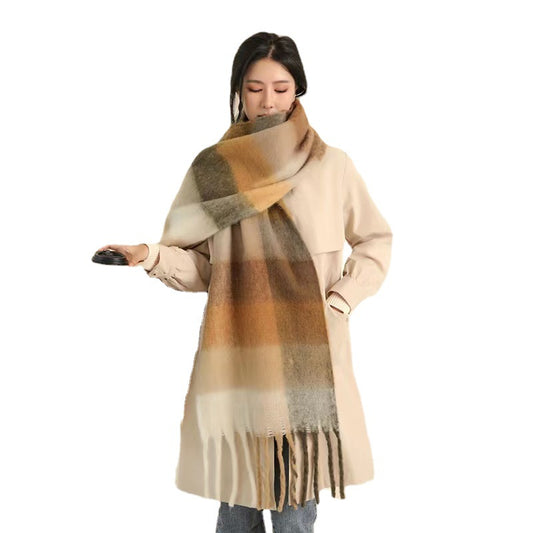 European And American Mohair Plush Warm Leisure Versatile Lattice Scarf