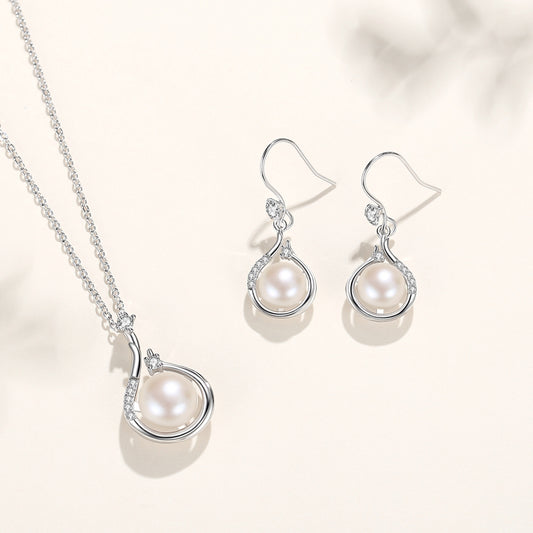 Freshwater Pearl Necklace Sterling Silver Vintage Full Diamond Clavicle Chain