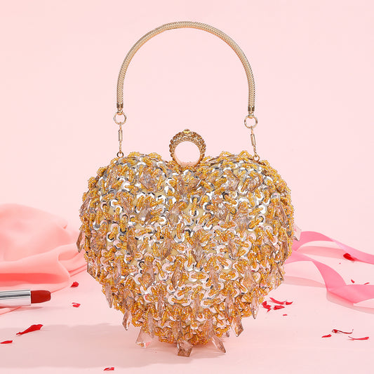 Embroidered Beaded Heart-shaped Dinner Bag