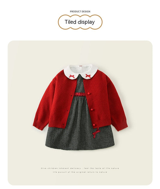 Children's Cardigan Knitted Jacket Long-sleeved Shirt Vest Dress Suit