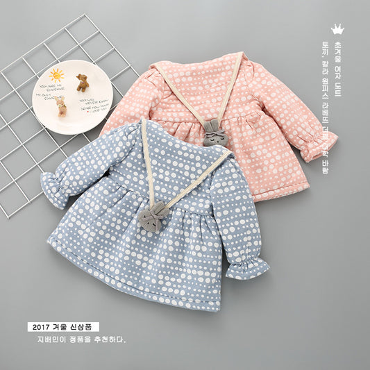 New Autumn And Winter Dress Female Children With Korean Female Baby Princess Dress Baby Cashmere Thickened Dot Skirt