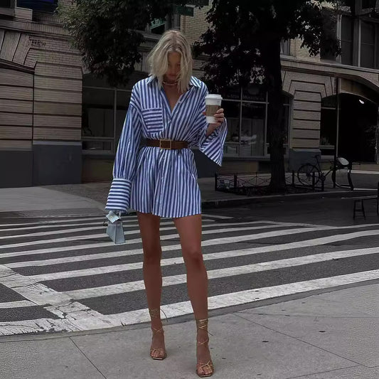 New Striped Mid-length Loose Fashion Striped Stitching Dress