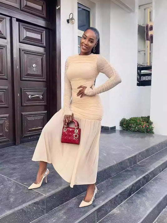 Women's Dress Round Neck Long Sleeve Slim Fit
