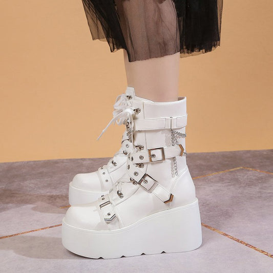 Belt Buckle Stage Booties New High Heel Platform Shoes Thick