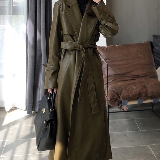 Women's Fashionable Fitted Long Sleeve Leather Coat