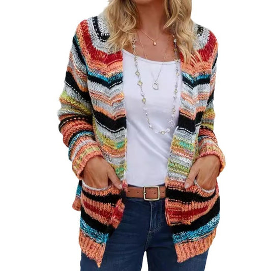 European And American Fashion Casual Women's Multi-color Printed Knitted Sweater