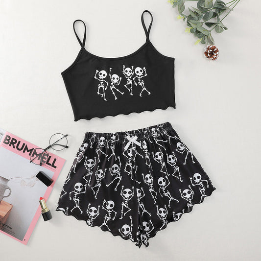 Split Sexy Bikini Printed Strap Tube Top Shorts Home Wear