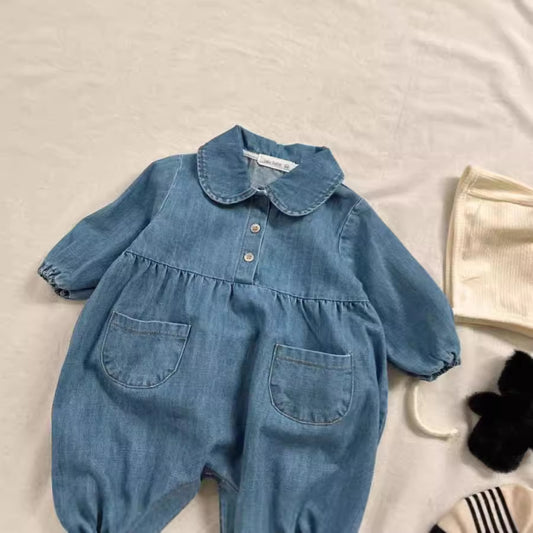 Infant Casual Flower Embroidered Sweater Long Sleeve Jumpsuit