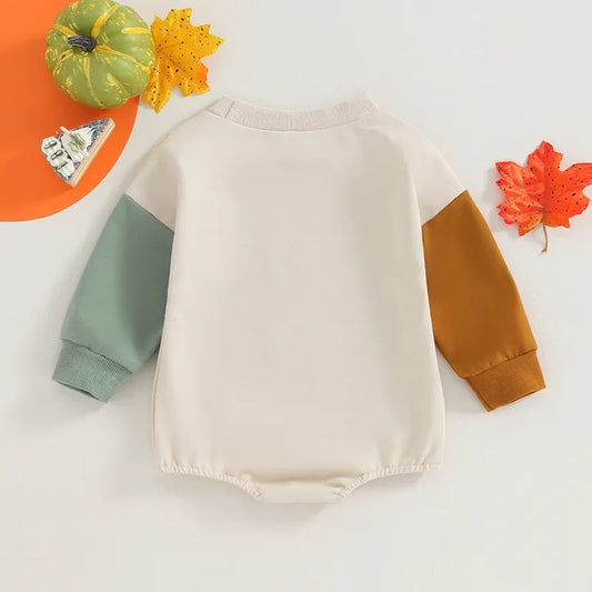 Halloween Infant Baby Jumpsuit Color Matching Long Sleeve Pumpkin Letters