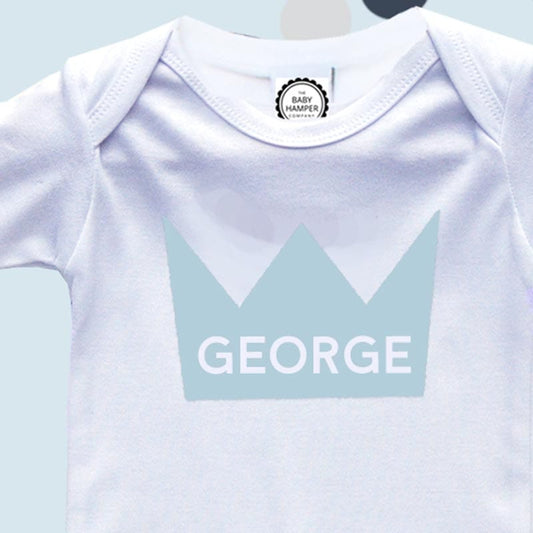 Blue Crown Baby Sleepsuit, 0-3 months - Personalise