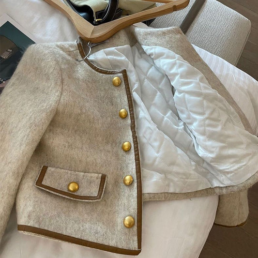 Checkered Lamb Cashmere Patchwork Cotton Jacket For Women