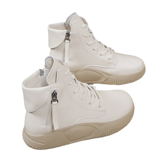 Soft Leather Retro Style Women's Boots Side Zipper Flat Round Head Simple Dr Martens Boots