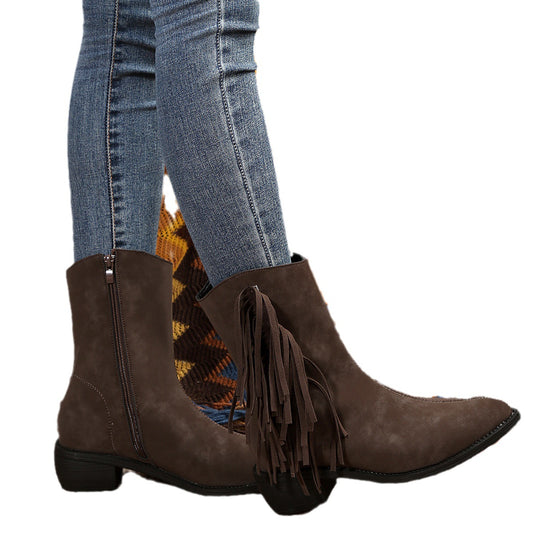 Women's Stylish Low Heel Pointed-toe Side Zip Tassel Knight Boots