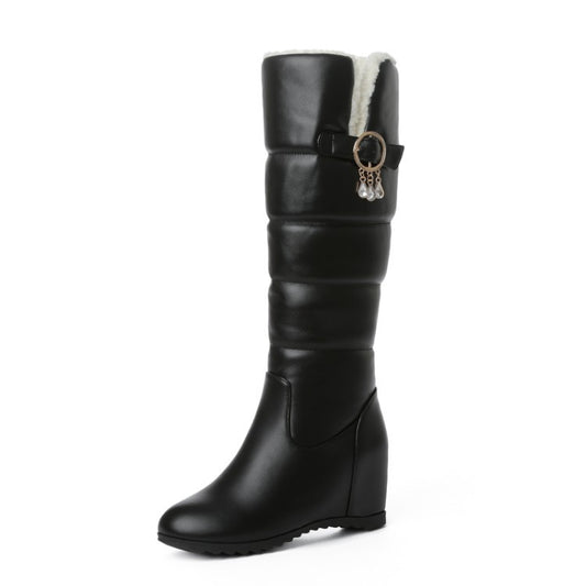 Round Toe Invisible Elevated Rhinestone Lamb Fur Hidden Height Snow Boots