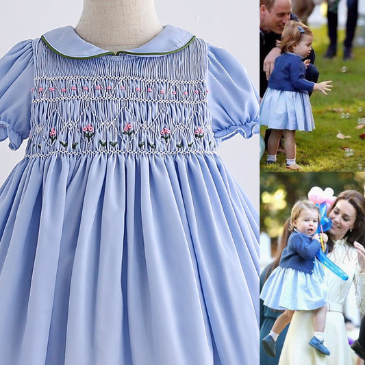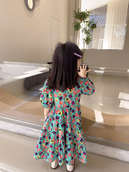 Girls' Floral Dress Short Sleeve Children's Western Style Baby