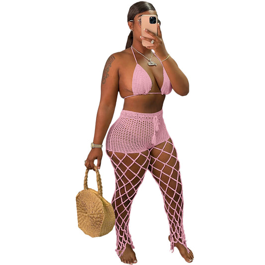 Traje de baño sexy de moda tejido a mano con rejilla de estilo playero transparente y hueco