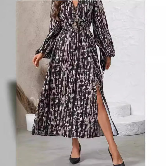 European And American Women's Clothing Fashion Dress Spaghetti-strap Floral Print Split Dress