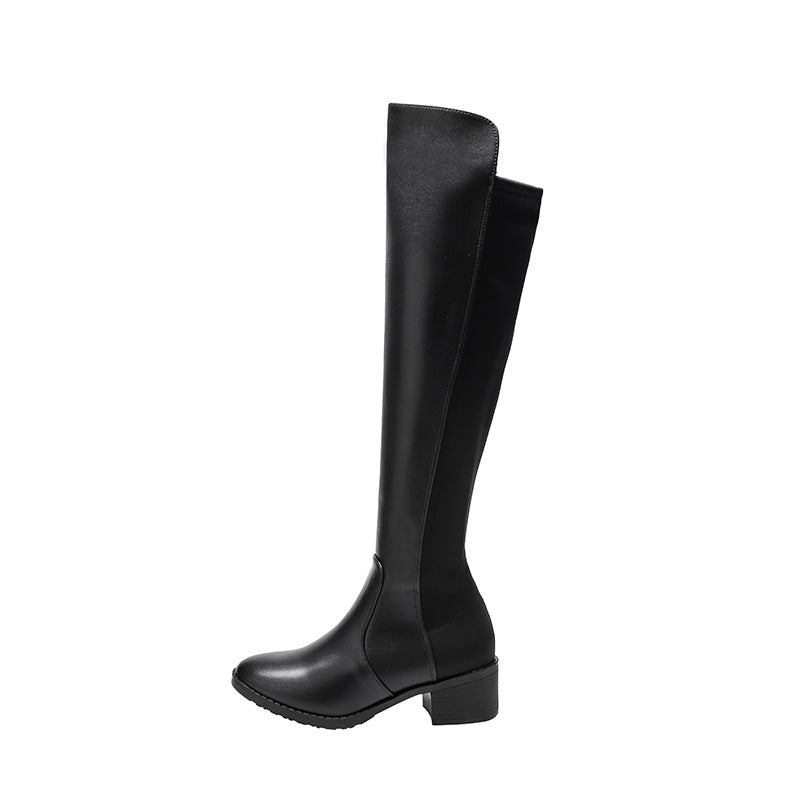Botas altas de pintura que combinan con todo, tacón largo y grueso para mujer