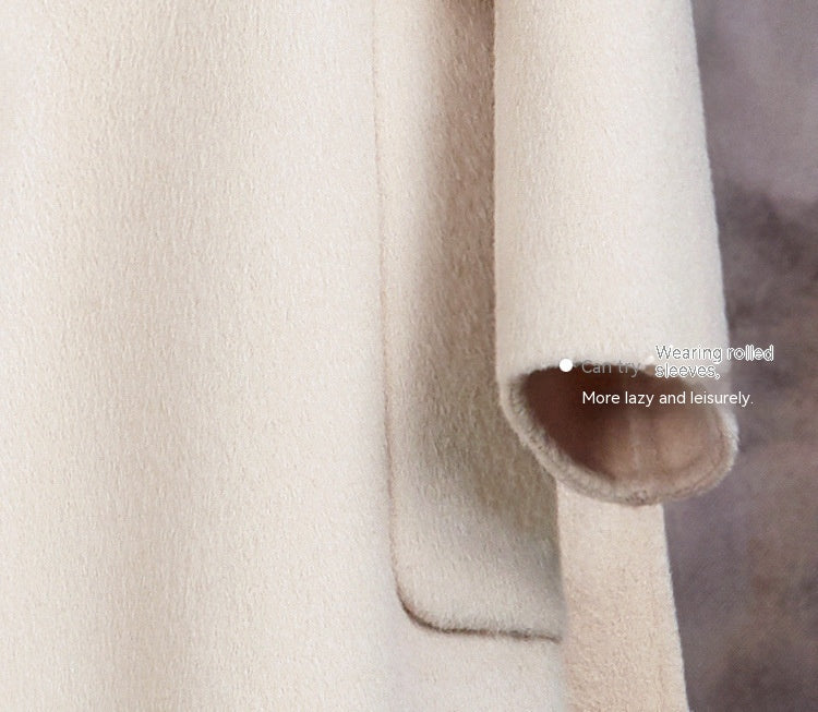 Abrigo de lana ajustado de color blanco cremoso para mujer, otoño e invierno
