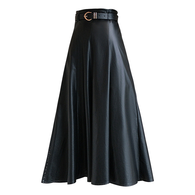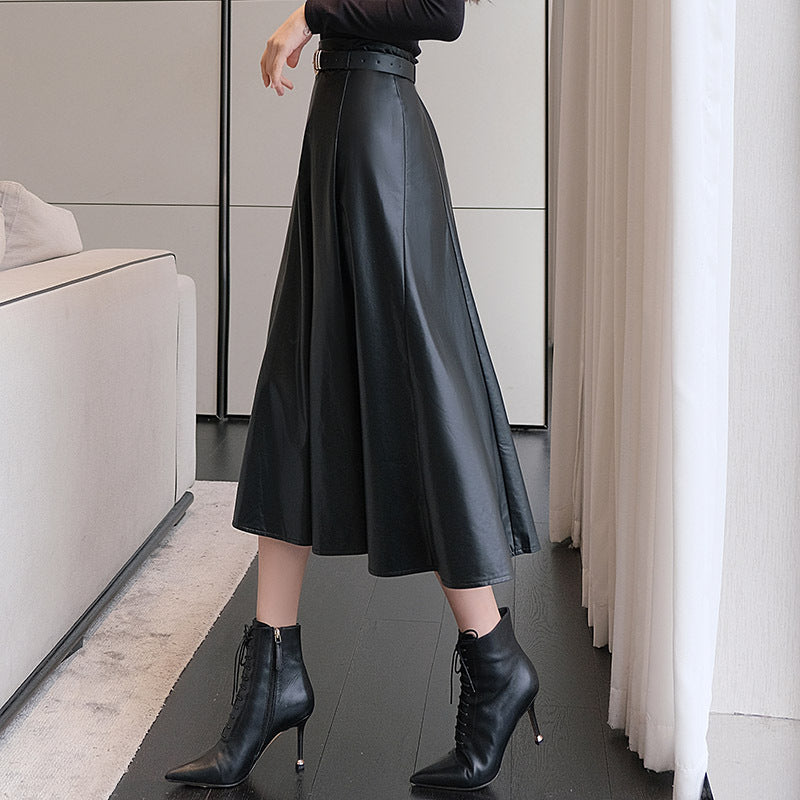 Black Upscale Fleece-lined Mid-length A- Line Skirt