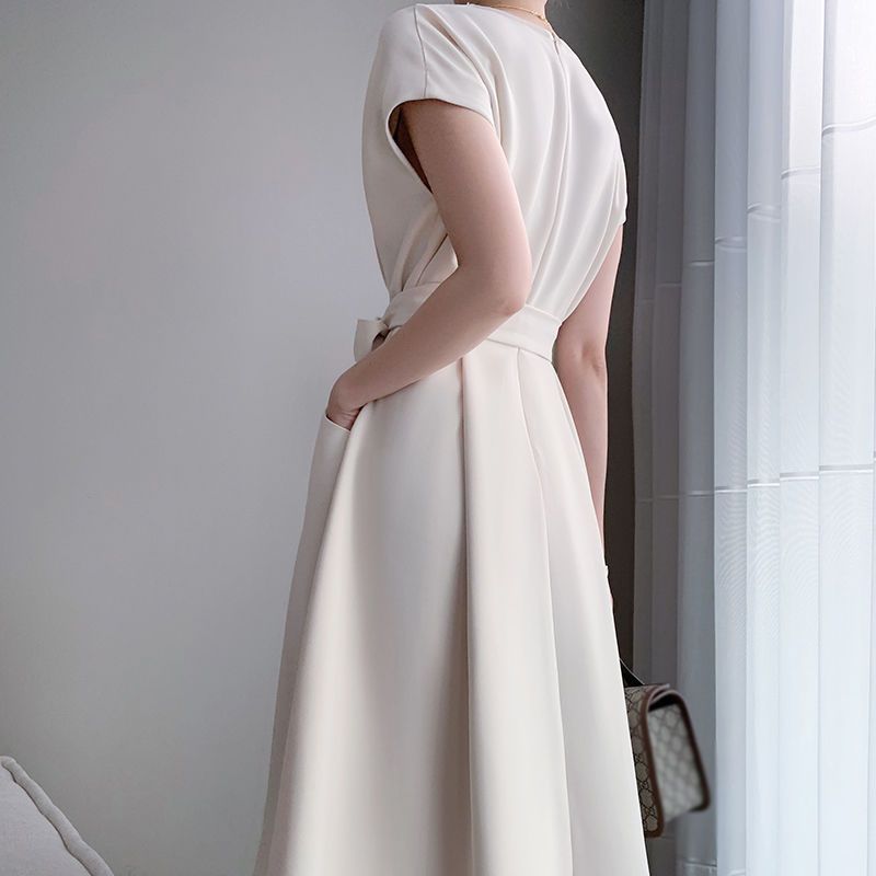 Vestido Summer Sense Sencillo Encaje Cintura Ajustada Falda Blanca Forma Pera