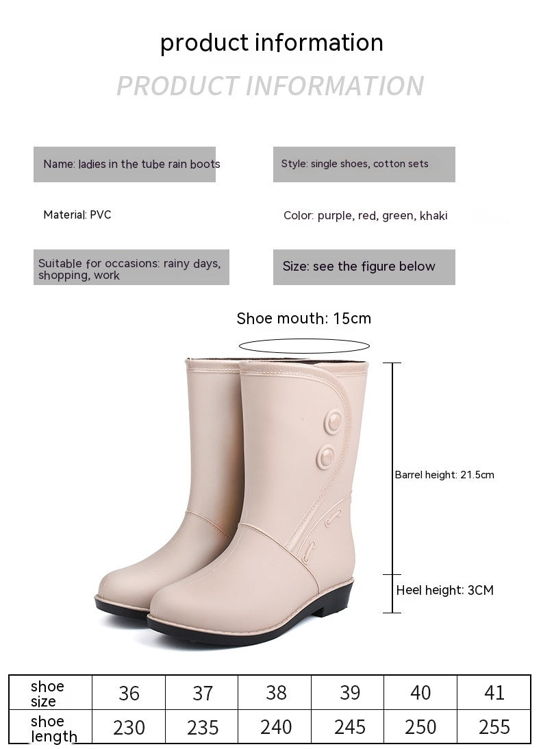Botas de lluvia acolchadas de terciopelo de moda para mujer, botas de lluvia cálidas hasta la rodilla