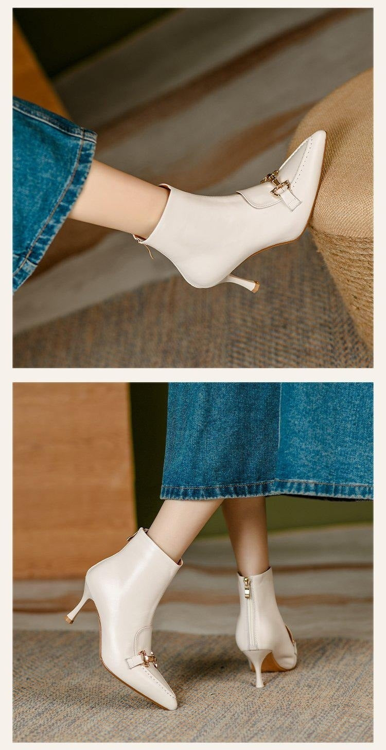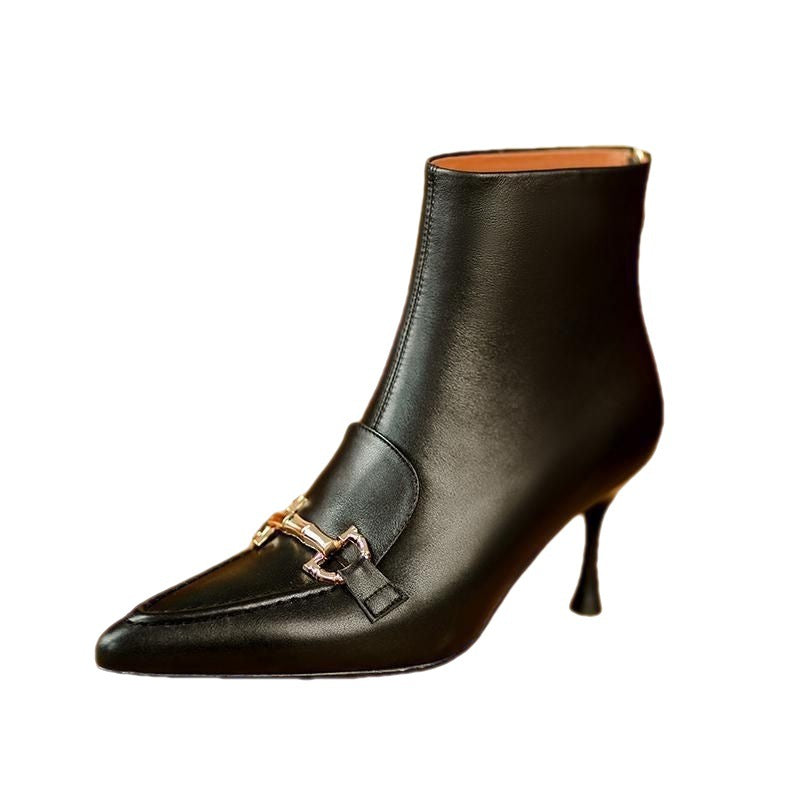 Botines retro con hebilla de metal y punta puntiaguda para mujer