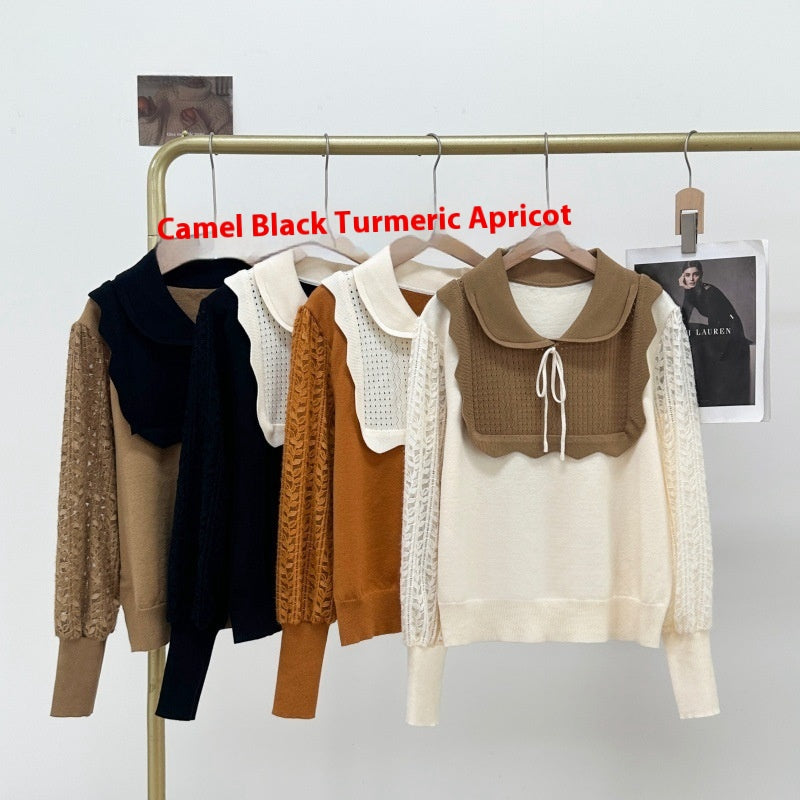 Blusa de punto de manga larga con contraste de color estilo francés para mujer
