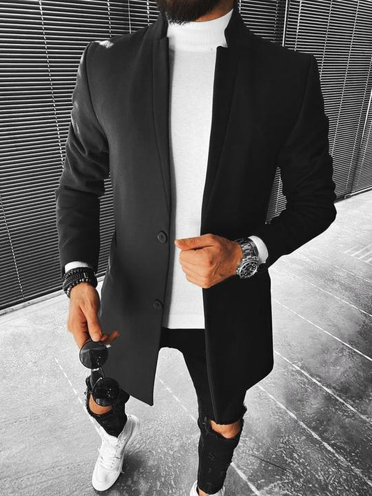 Stand-up Collar Mid-Length Men's Woolen Coat