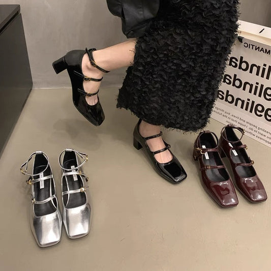 Square Toe Chunky Heel Buckle Mid-heel High Heel Women's Shoes