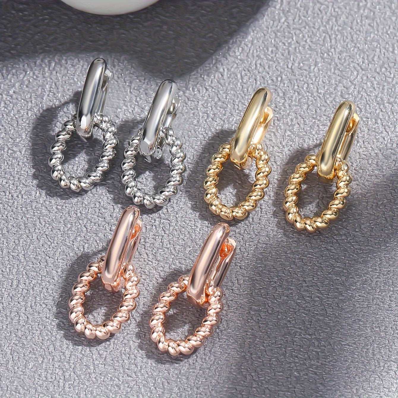 Temperament French Simplicity Twist Geometric Stitching Double-layer Texture Ear Clip Earrings Special-interest Design