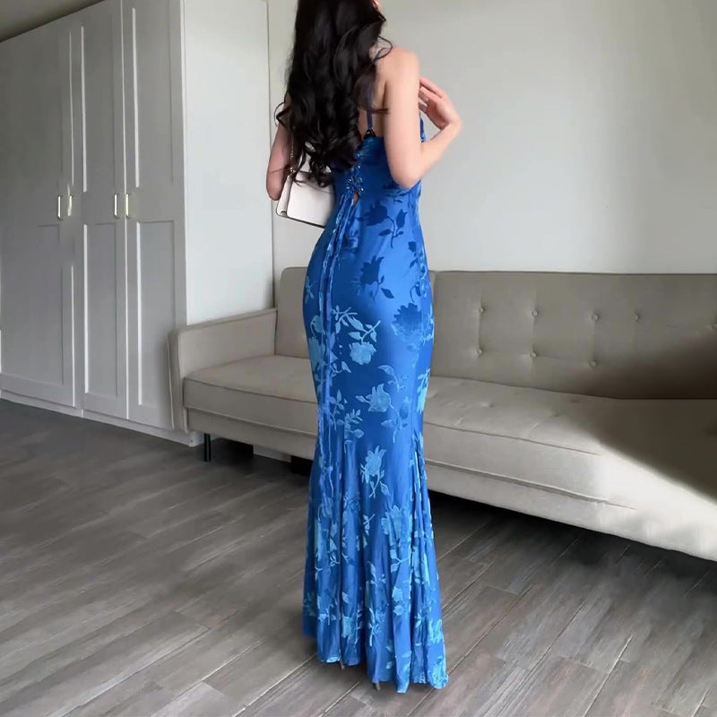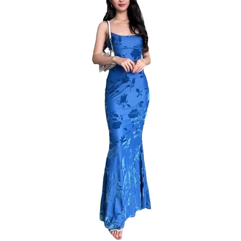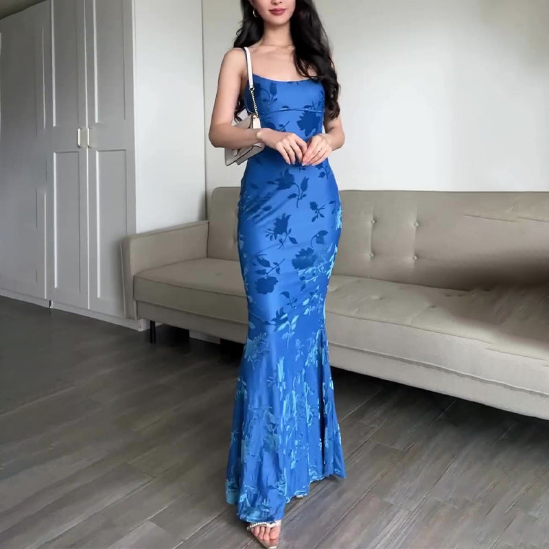 Women's Slip-on Printed Slim Fit Light Luxury Fishtail Dress