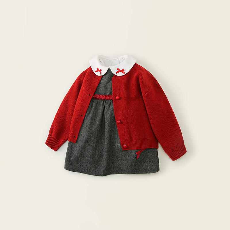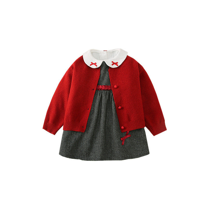 Children's Cardigan Knitted Jacket Long-sleeved Shirt Vest Dress Suit