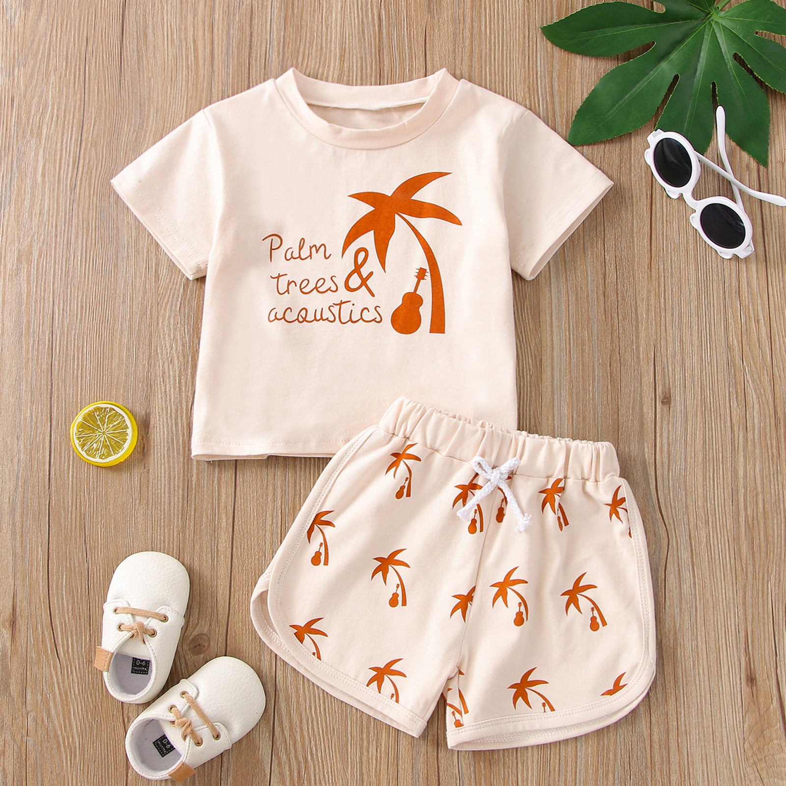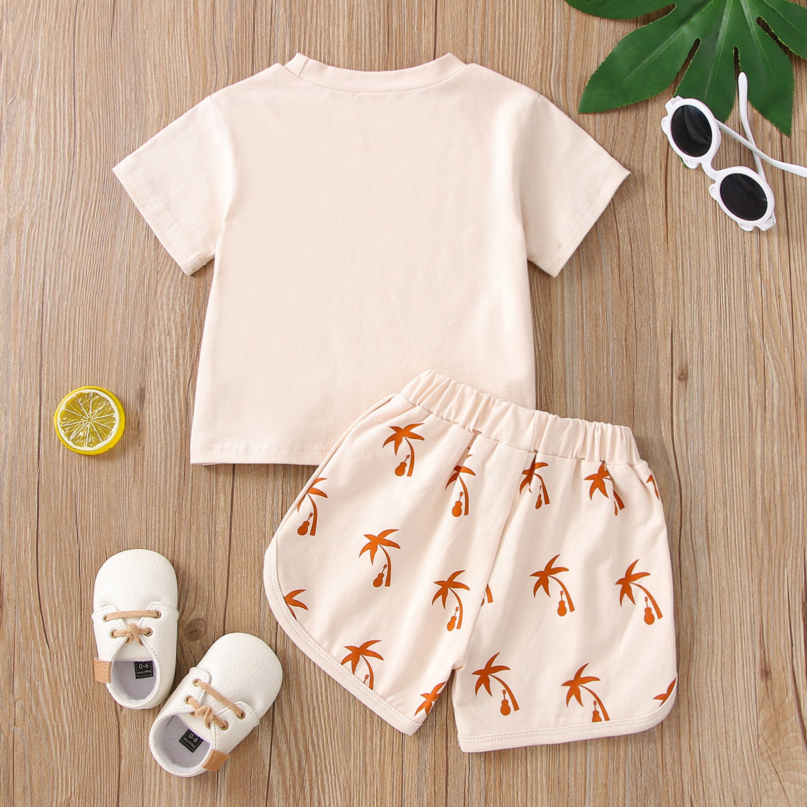 Children's Cotton Suit Coconut Printed Top And Shorts Two-piece Set