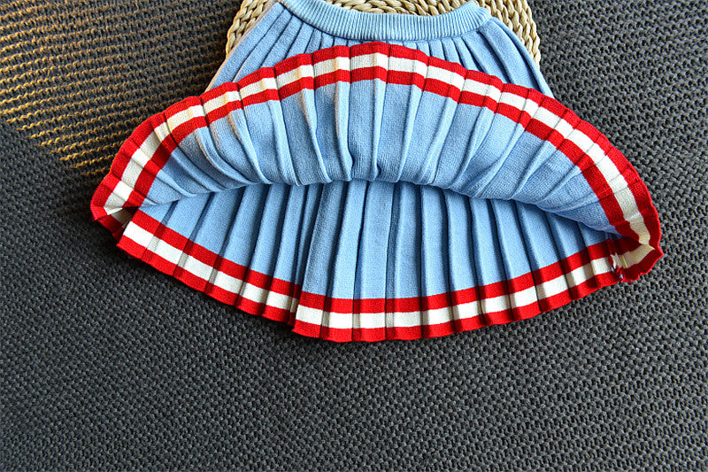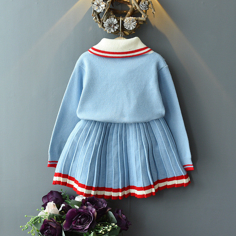 College Style Long-sleeved Pullover Knit Short Skirt Suit