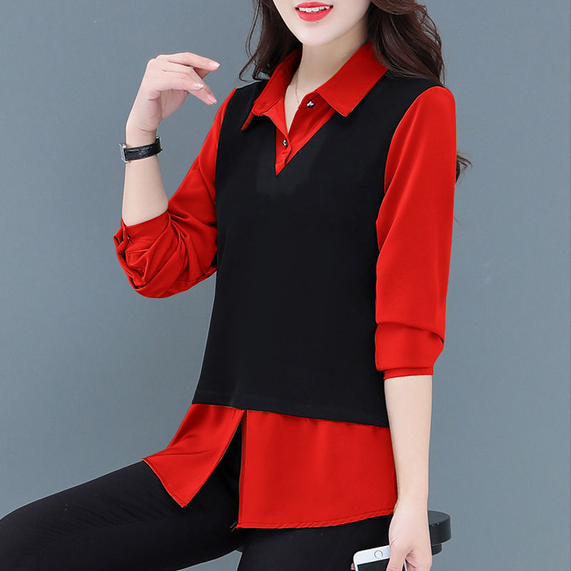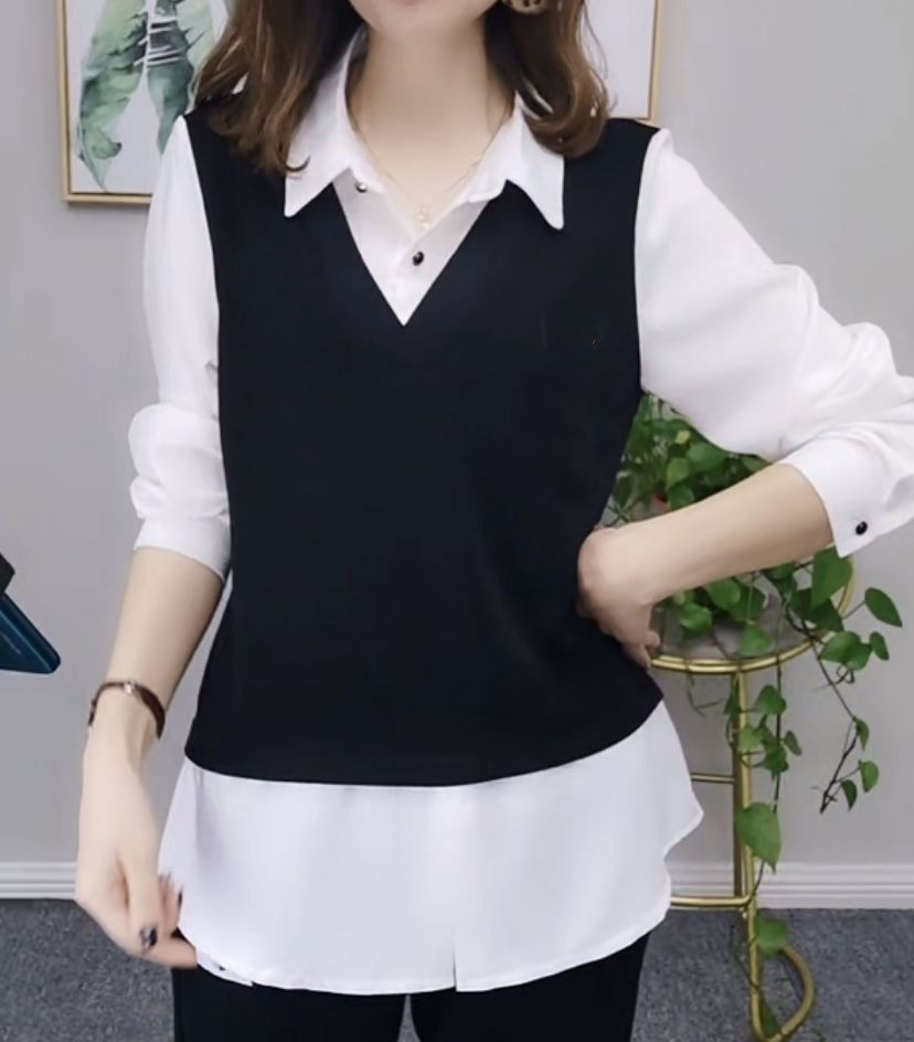 Fake Two Pieces Shirts Women's Top Slimming Slim Fit
