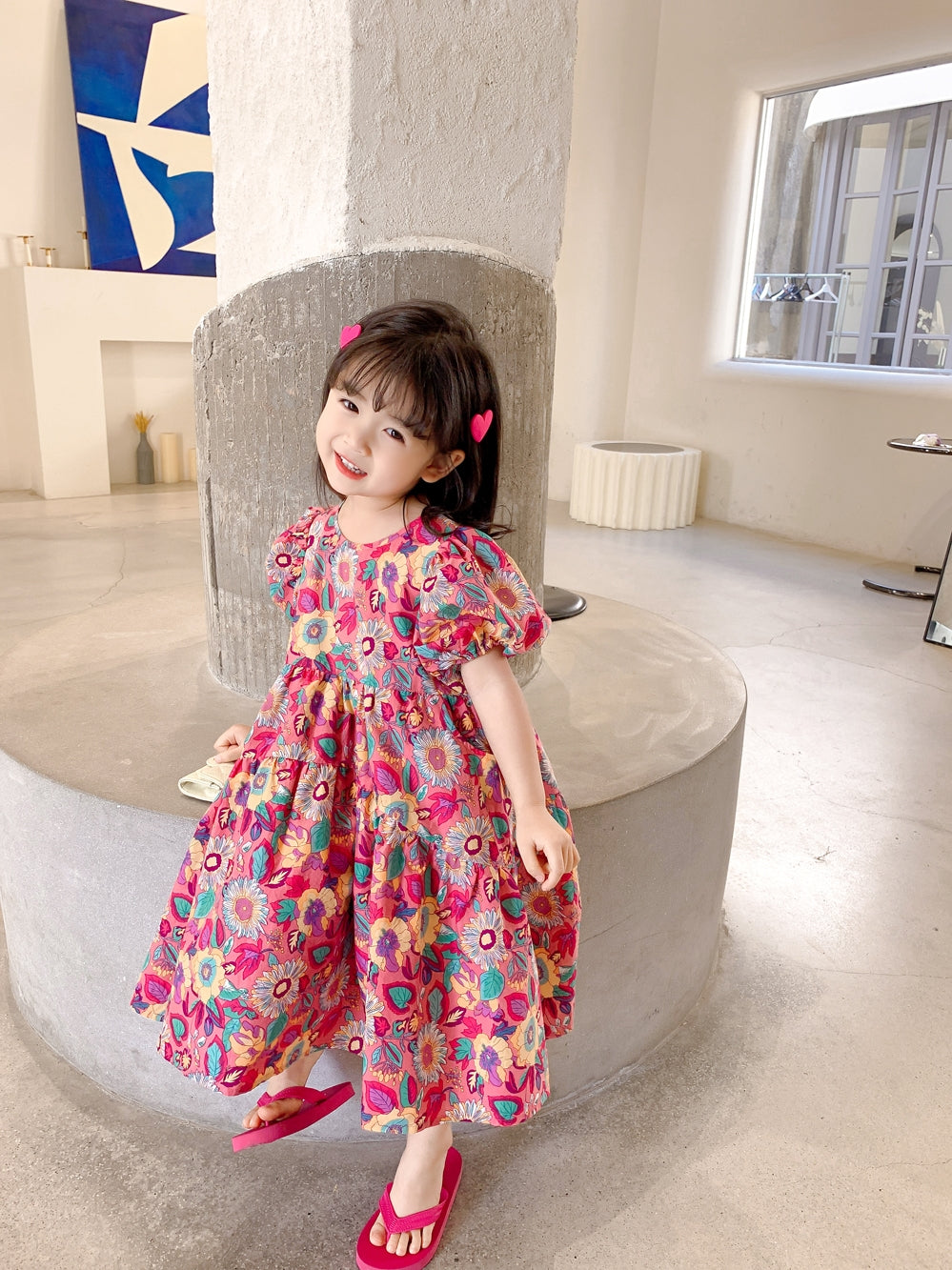 Girls' Floral Dress Short Sleeve Children's Western Style Baby