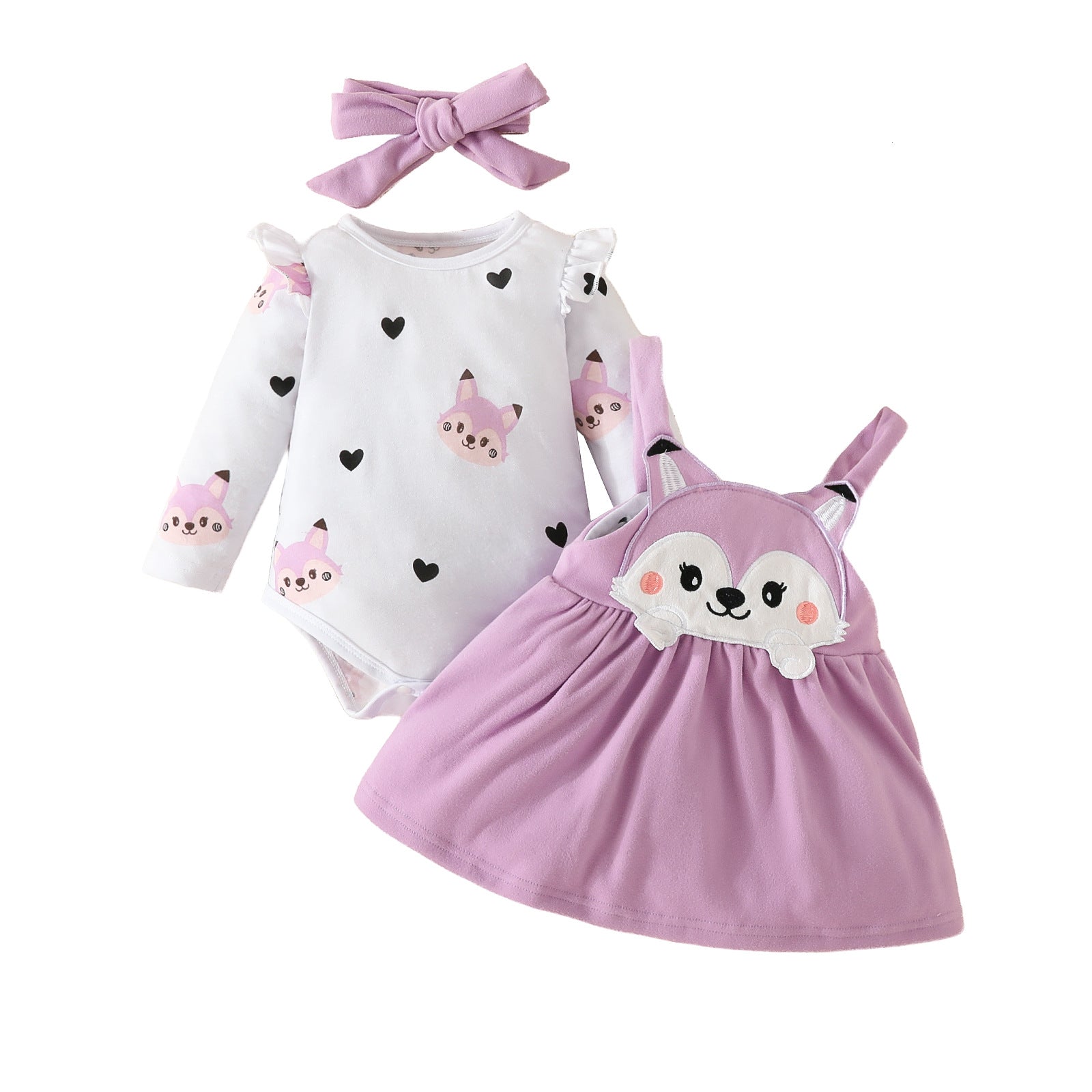 Girls' Skirt Set Love Animal Romper Embroidered Fox Suspender Skirt