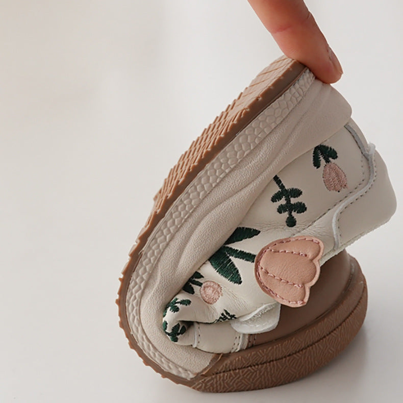 Girls Sneakers Soft Bottom Embroidered Flowers Sweet Retro