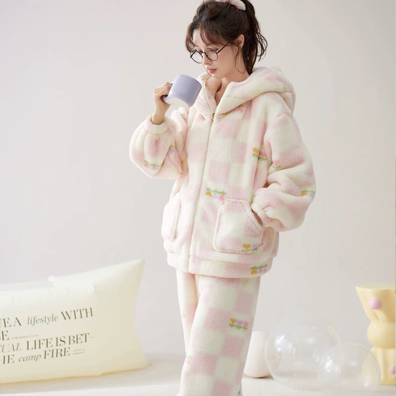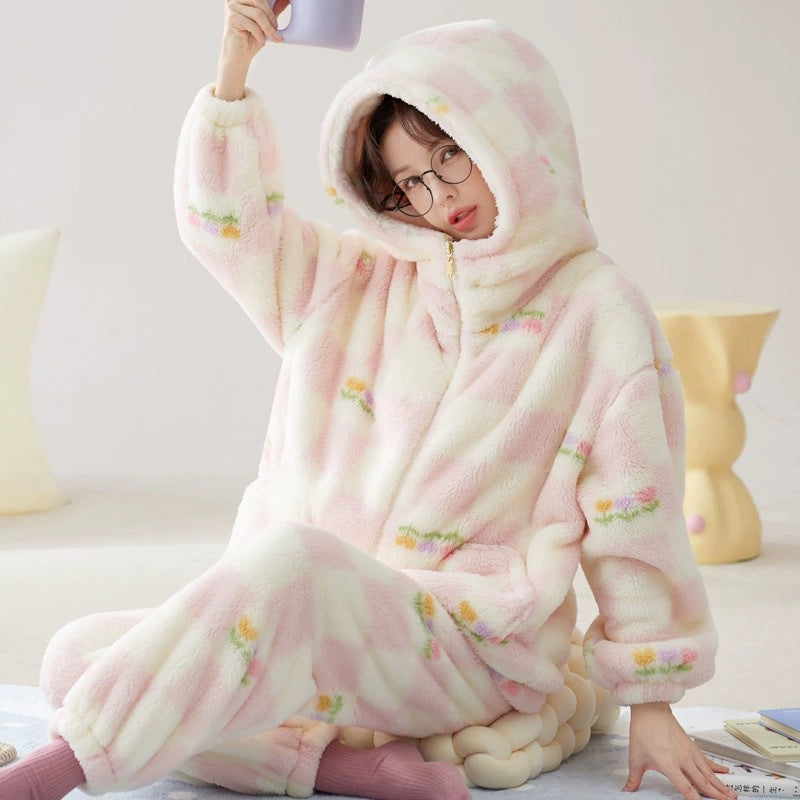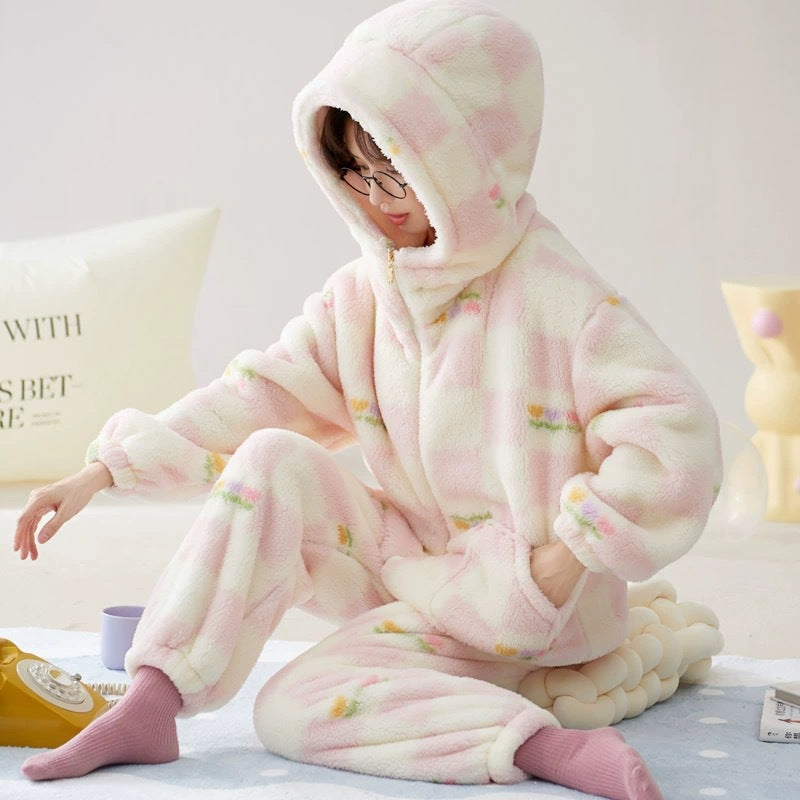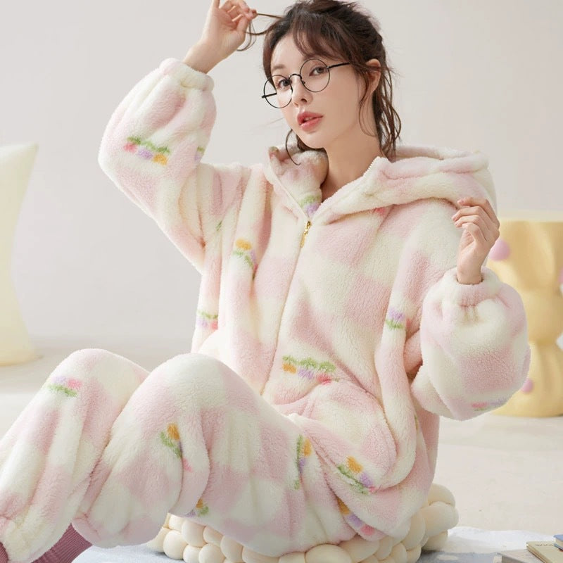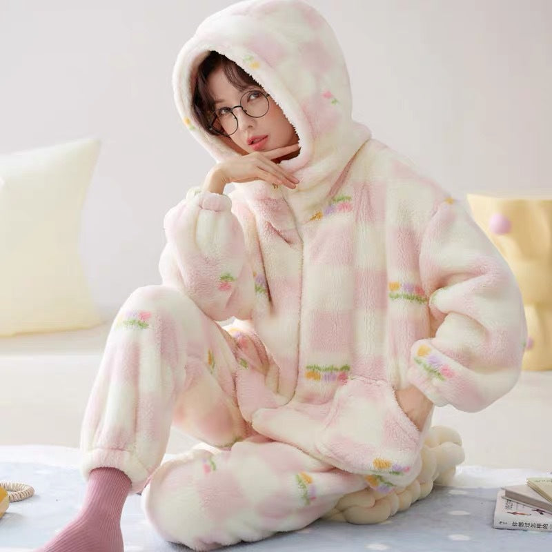 Hooded Coral Velvet Pajamas Women's Winter