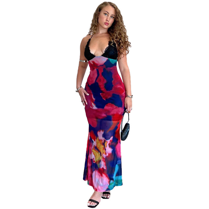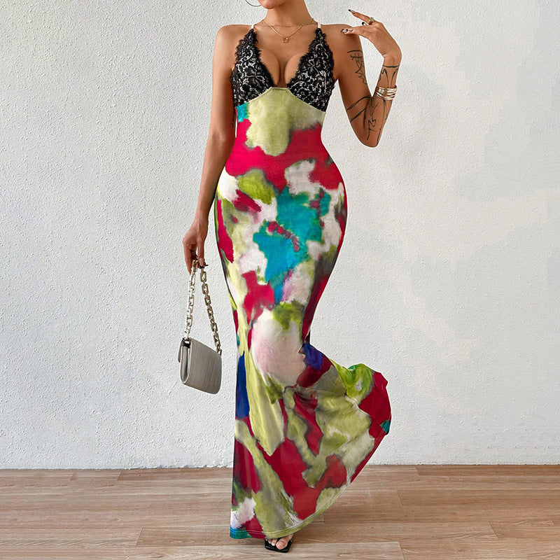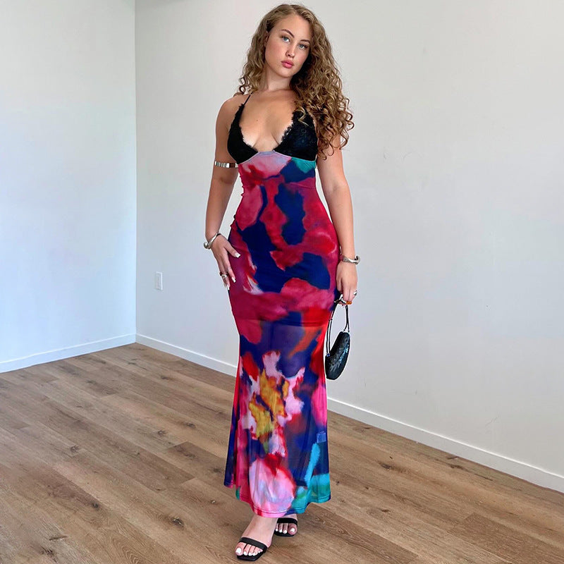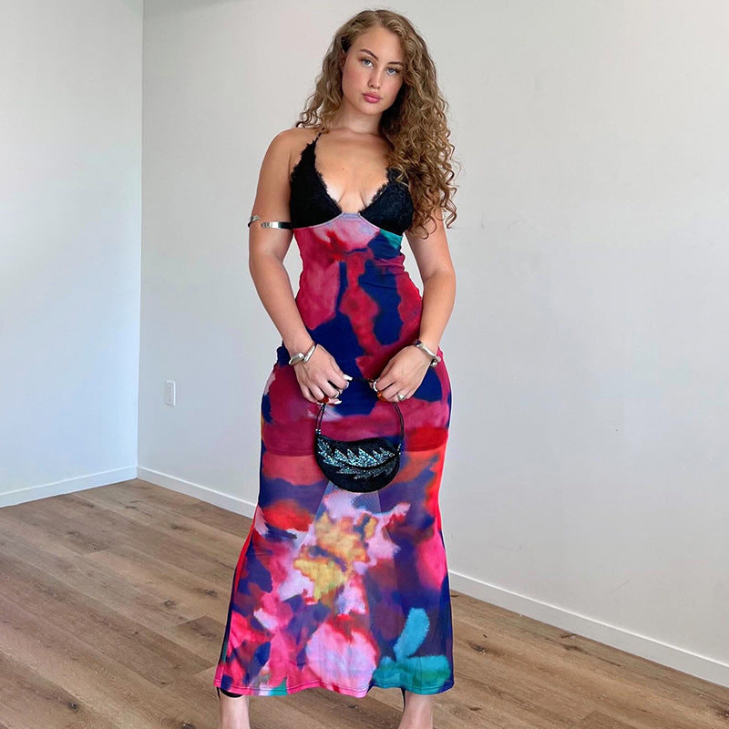 Lace Lace Spaghetti-strap Sexy Print Dress