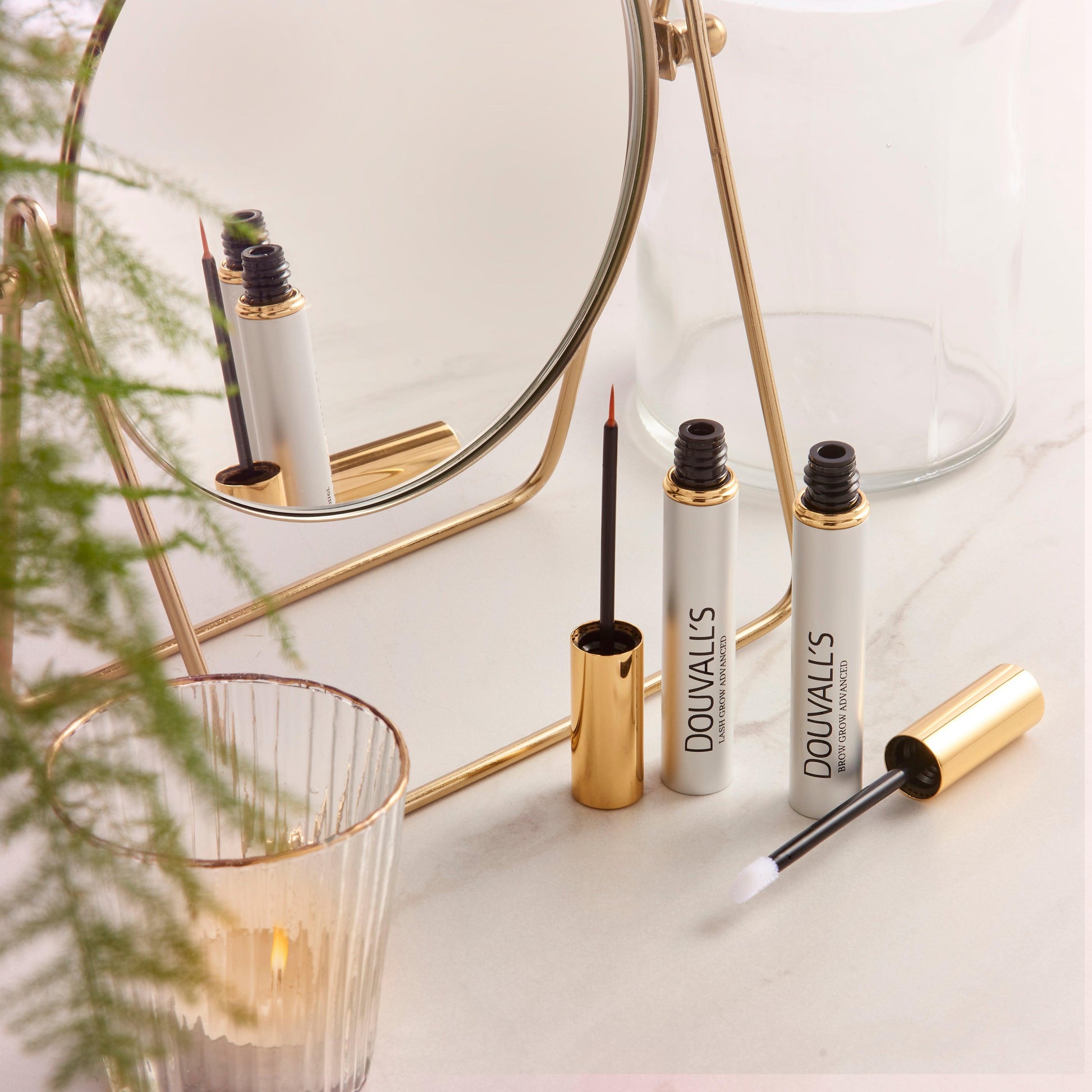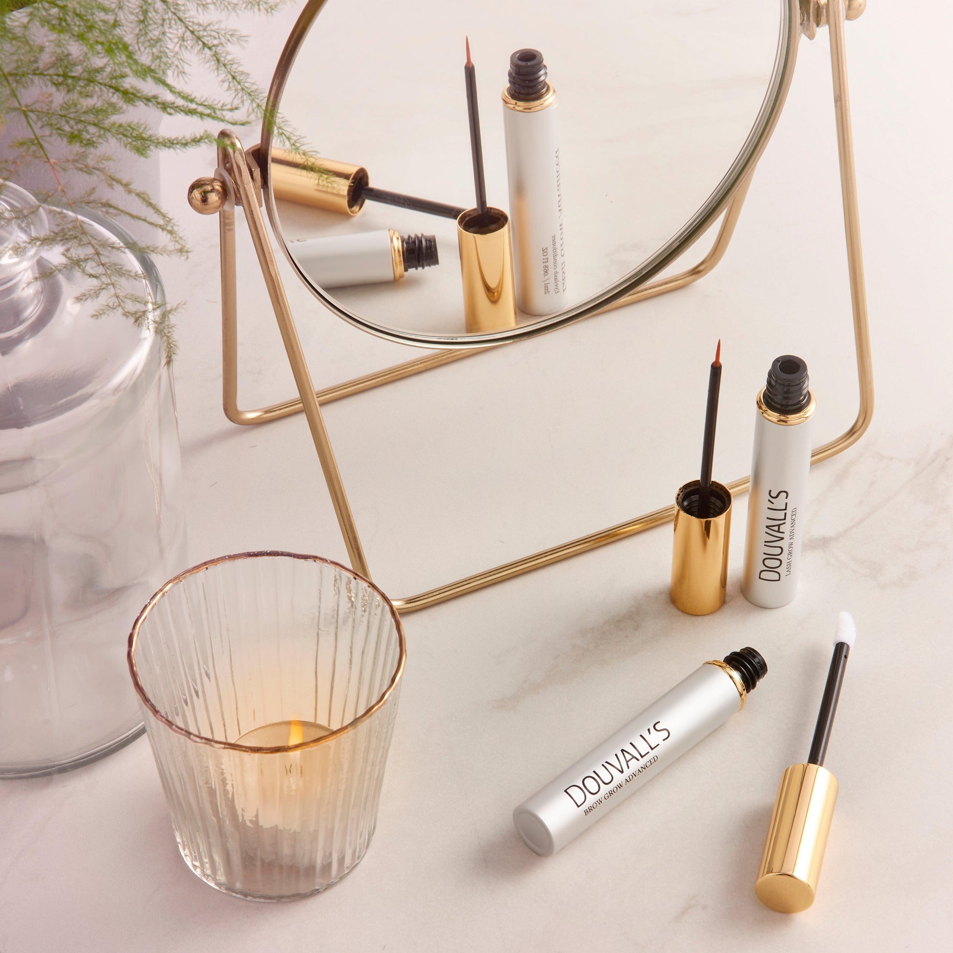 Discover the secret to naturally longer, fuller, and voluminous eyelashes with Douvall's Lash Grow Advanced Conditioning Serum. Our powerful formula harnesses the benefits of advanced Biotin Peptides, essential vitamins, and our multi award-winning organic first cold-pressed Argan oil to target thin, brittle, short, or sparse eyelashes, transforming them in just 25 days of use.