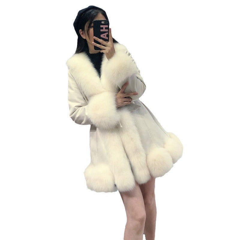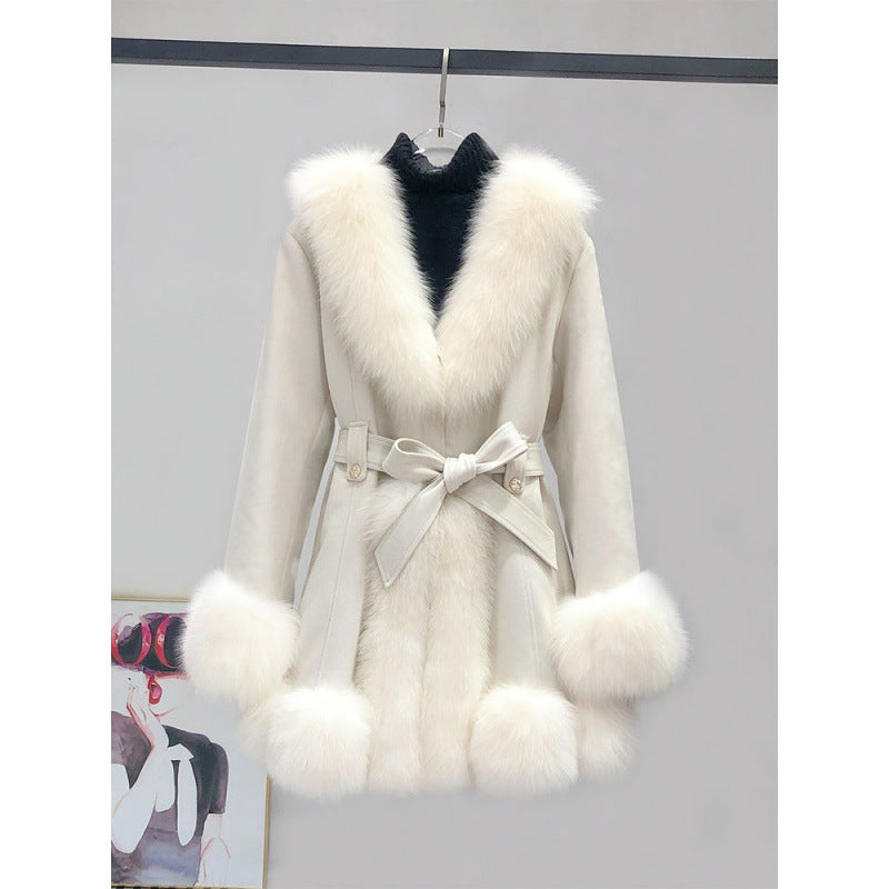 Leather Coat Suede Fur Integrated Mid-length Western Style Slimming