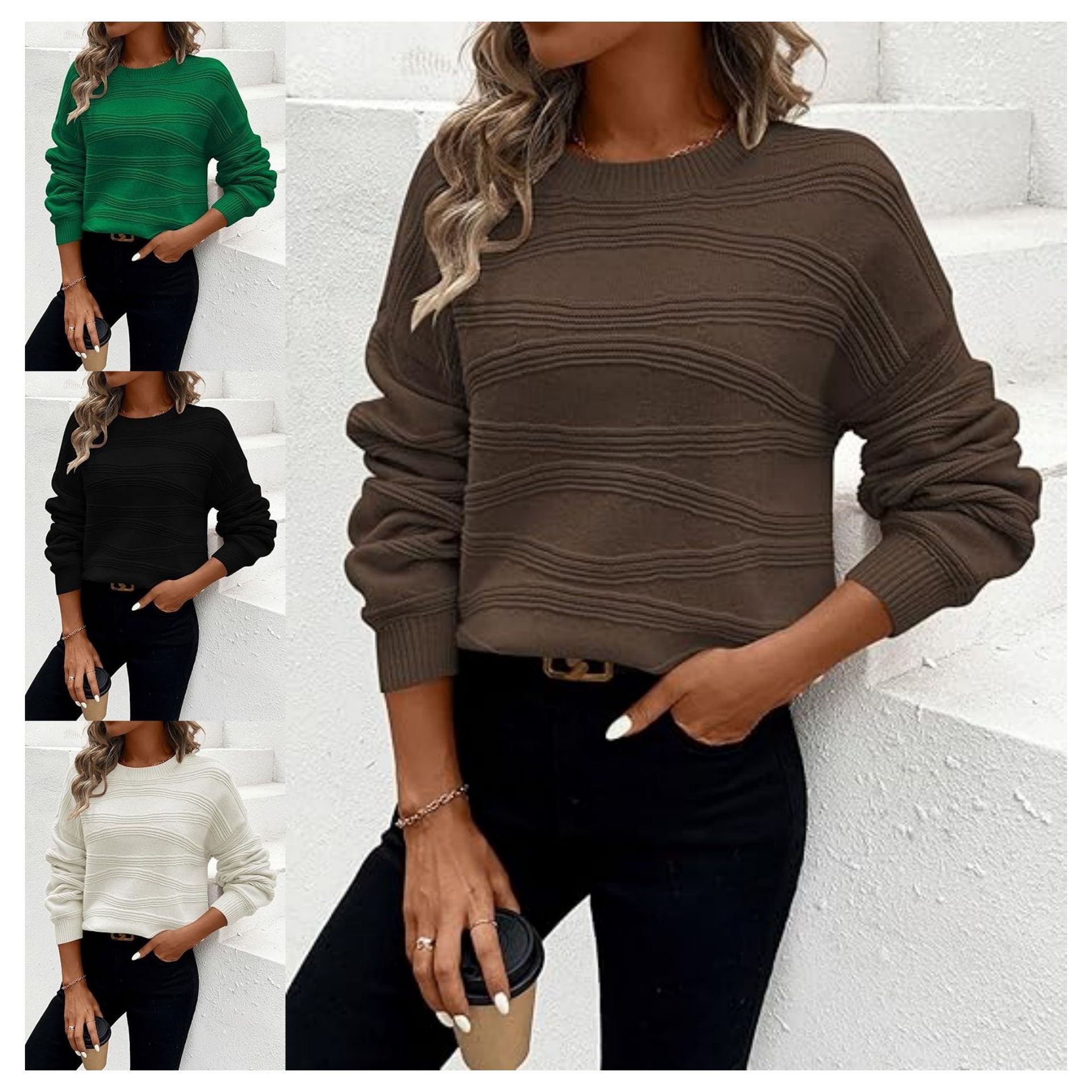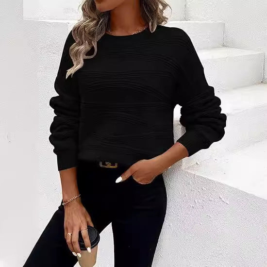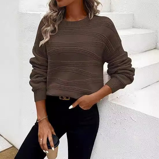 Pullover Corrugated Knitted Long-sleeved Top