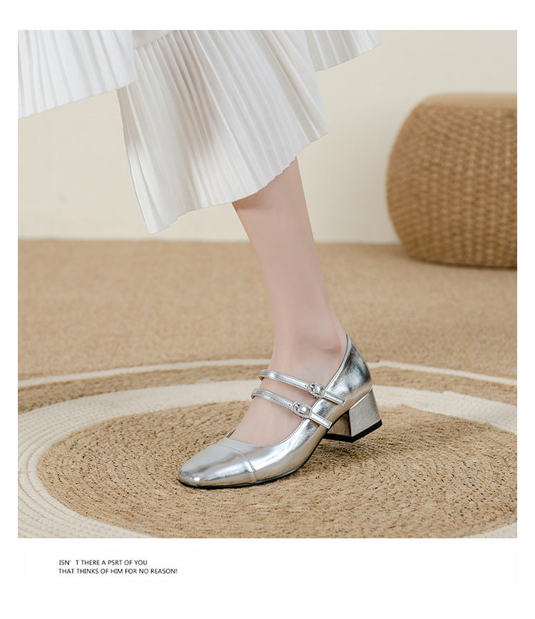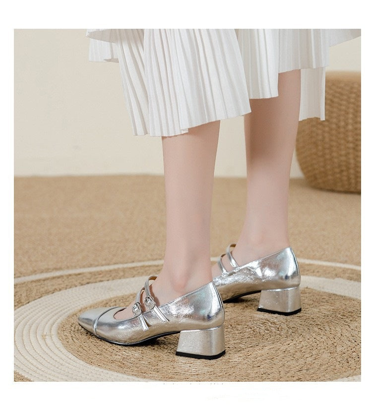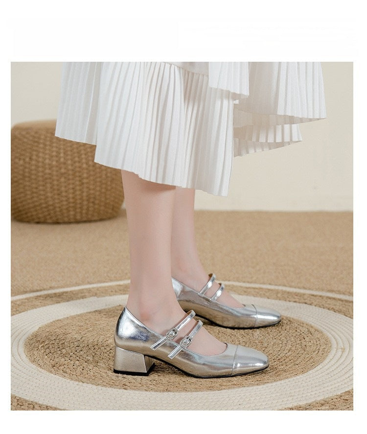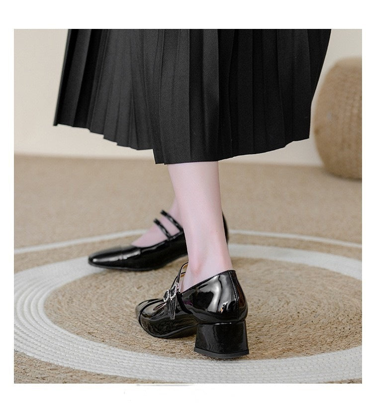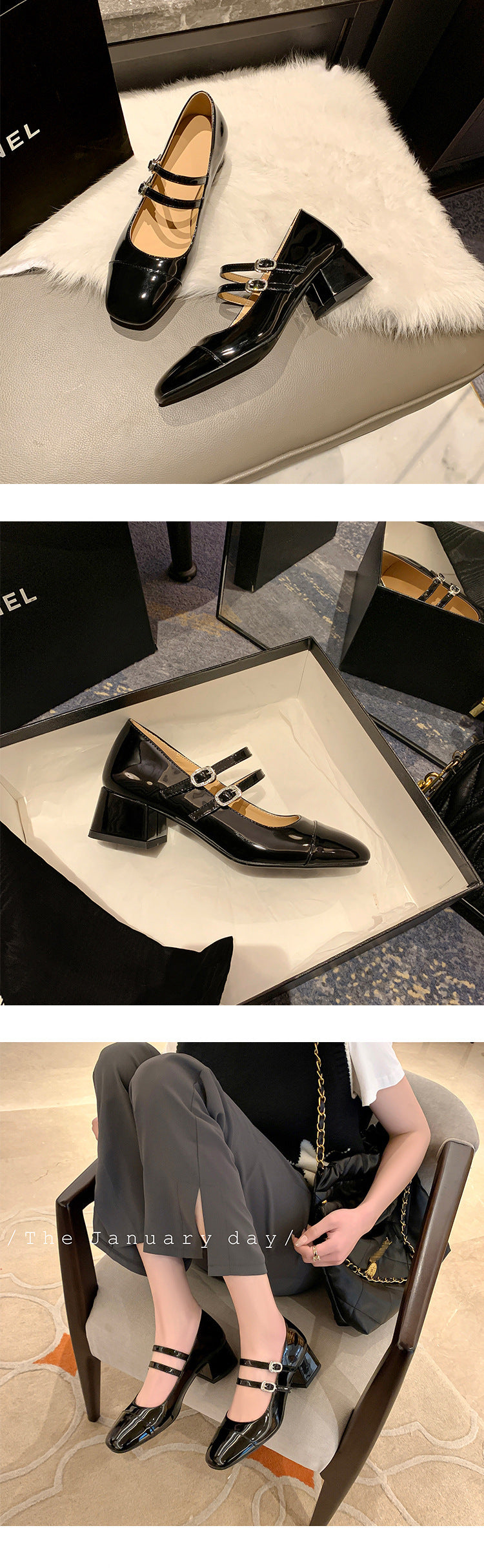 Square Toe Chunky Heel Buckle Mid-heel High Heel Women's Shoes
