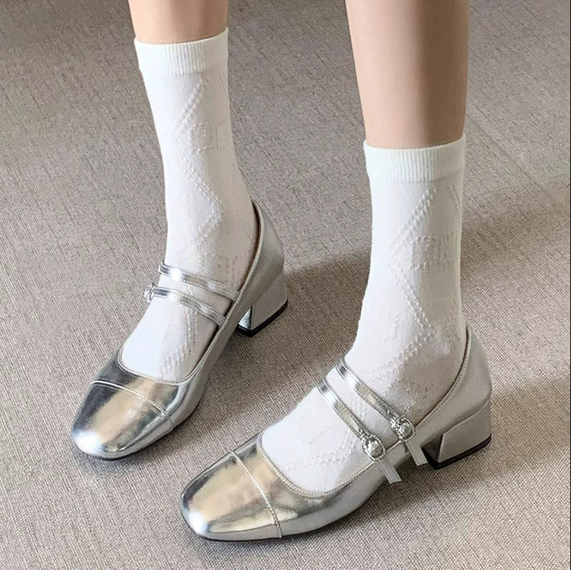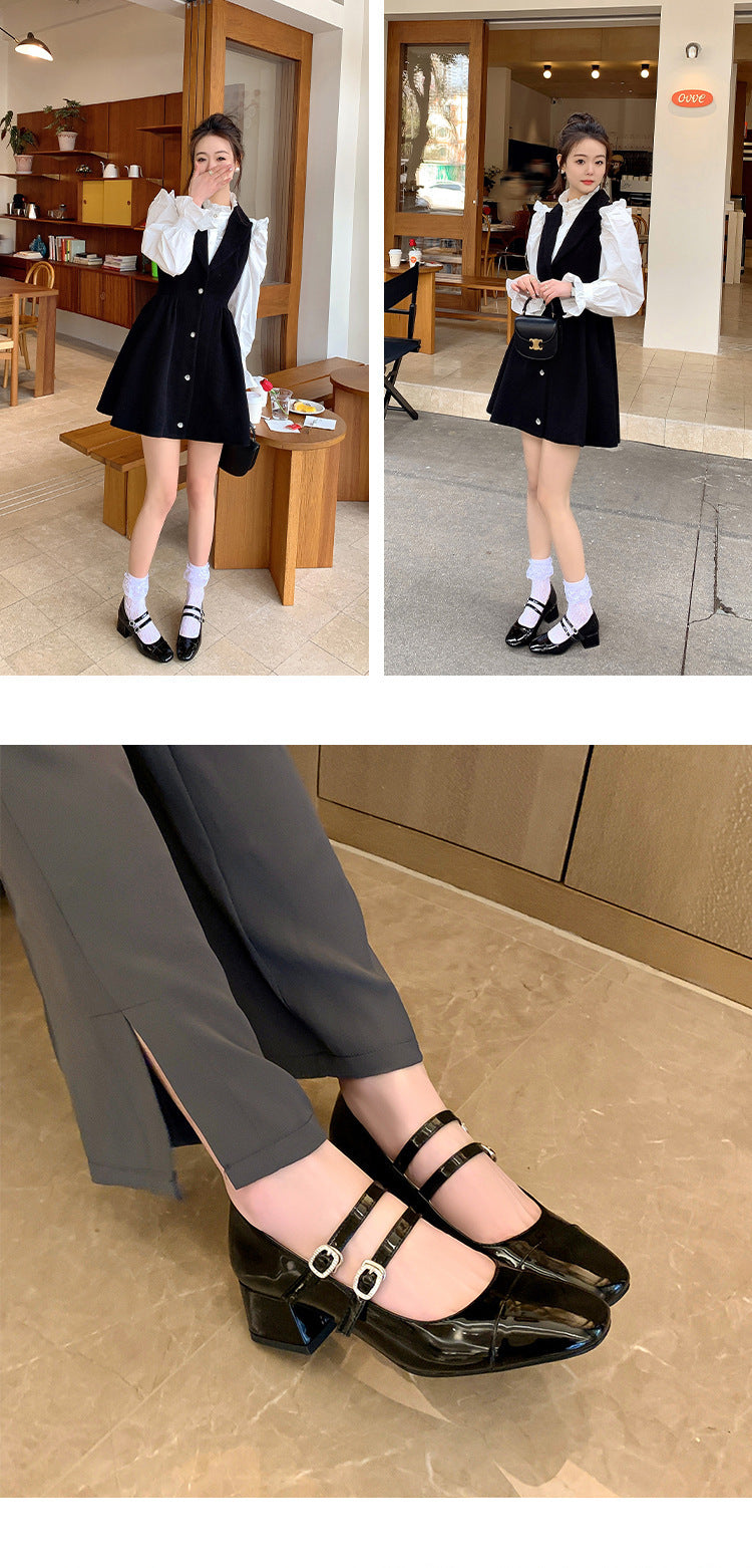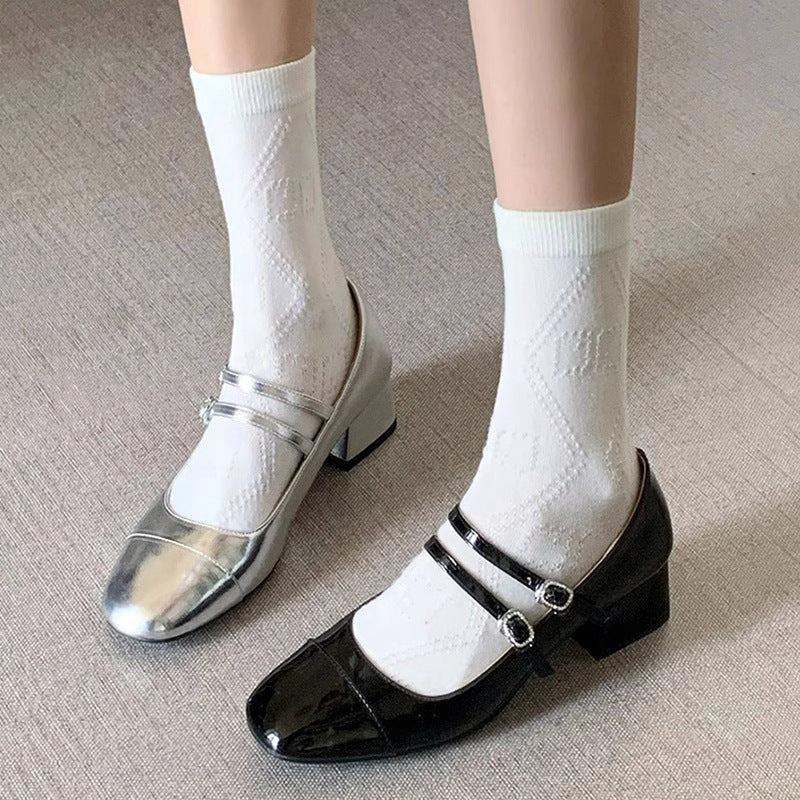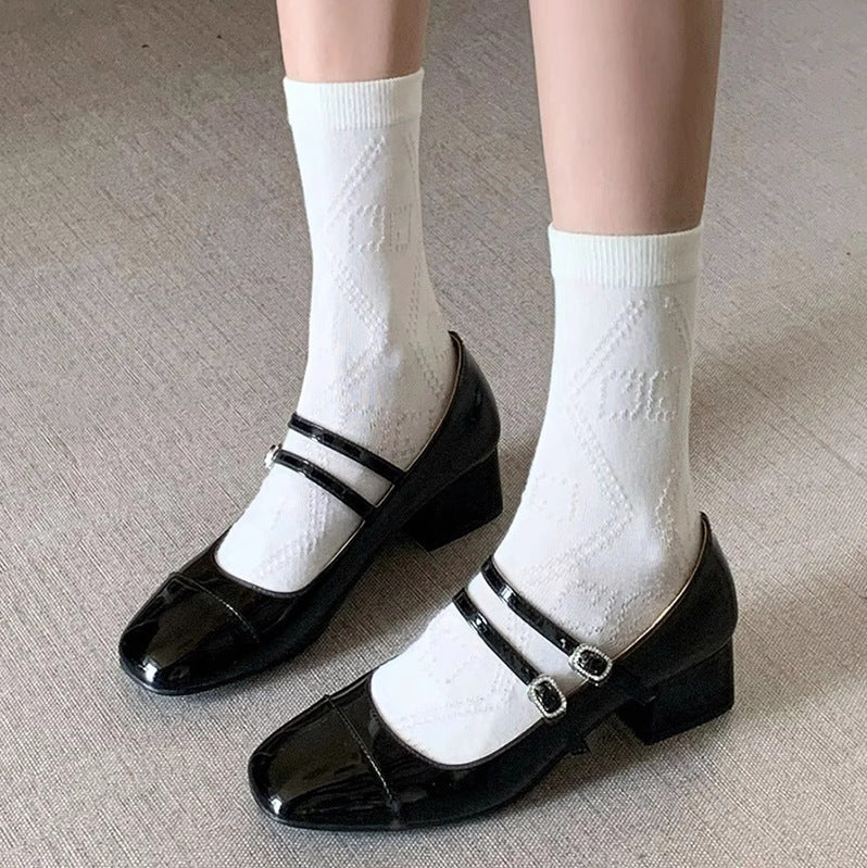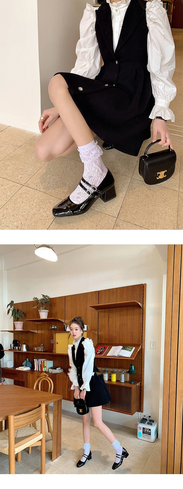 Square Toe Chunky Heel Buckle Mid-heel High Heel Women's Shoes