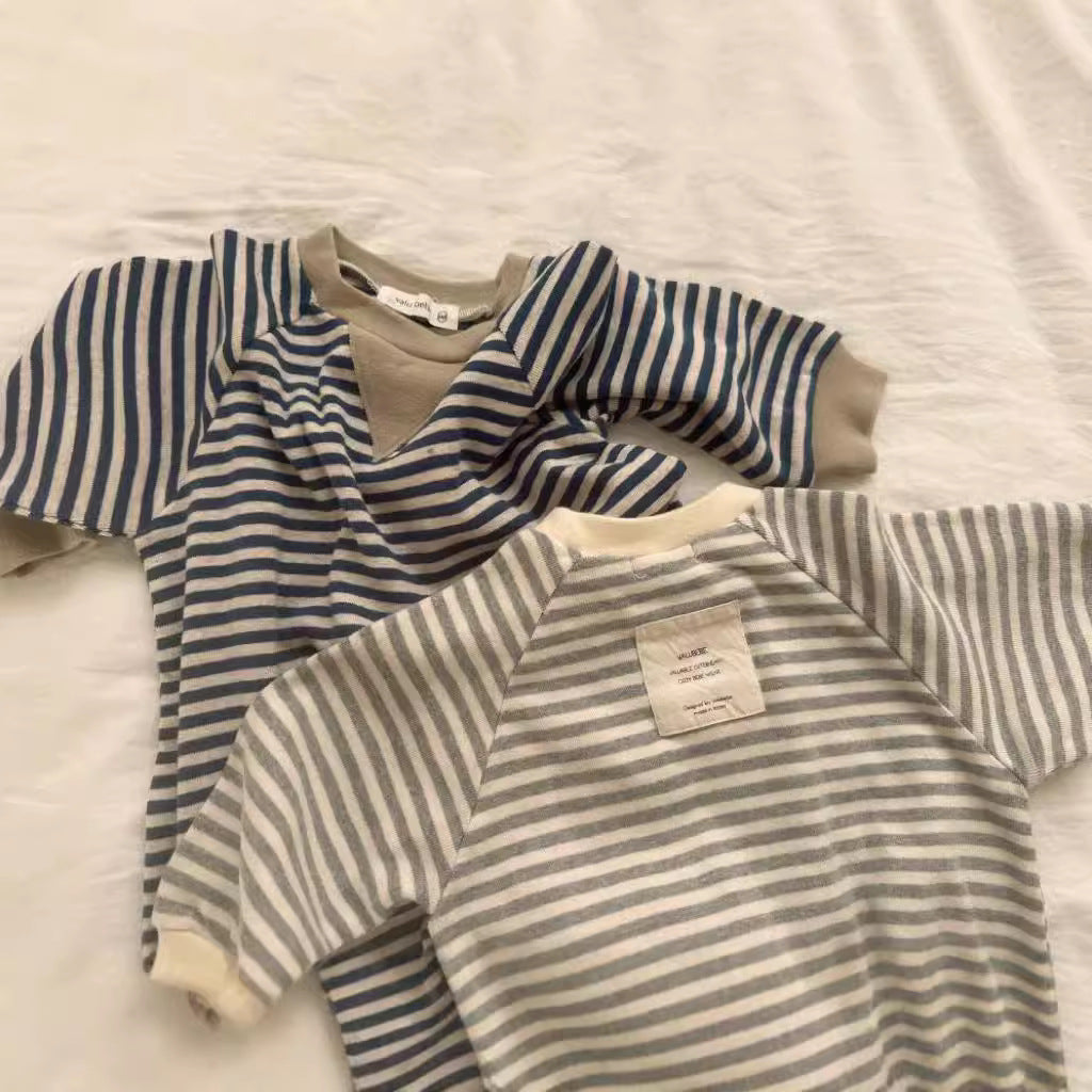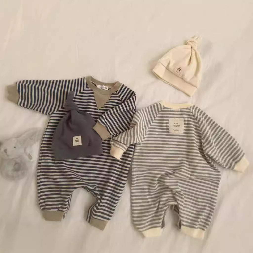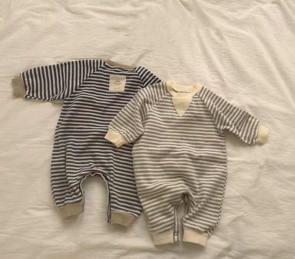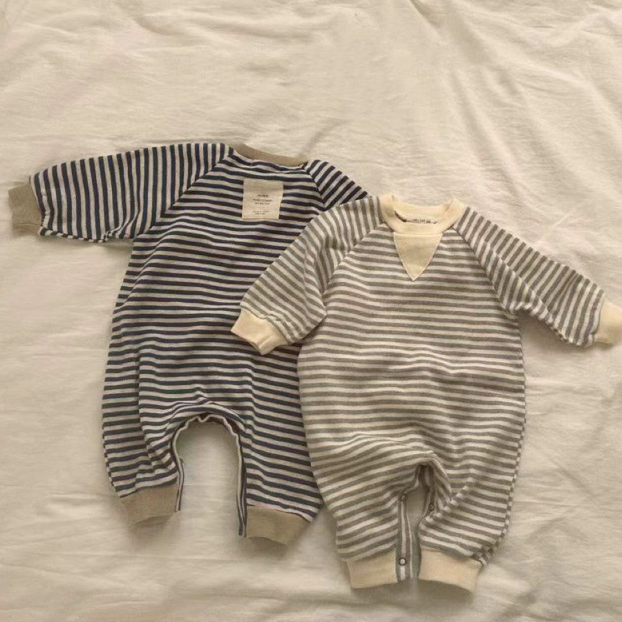 Striped Round Neck One-piece Long Sleeves Boys And Girls