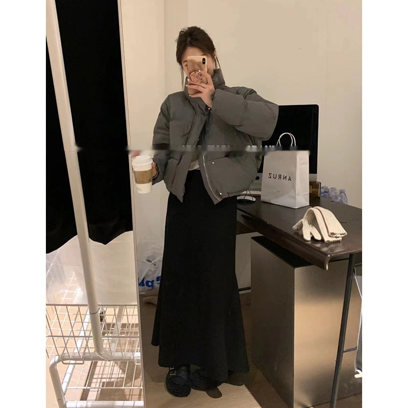White Duck Down Short Down Jacket Female Lazy Winter Gray Puffer Jacket Coat