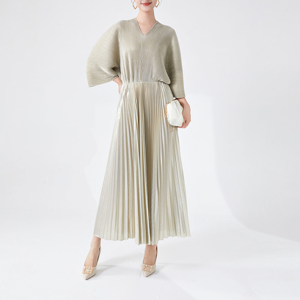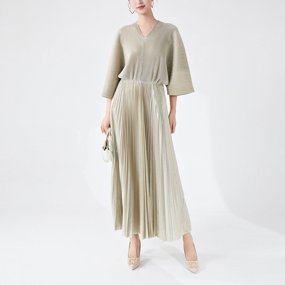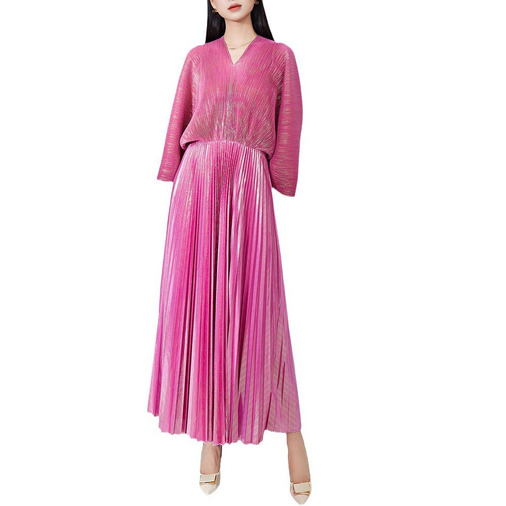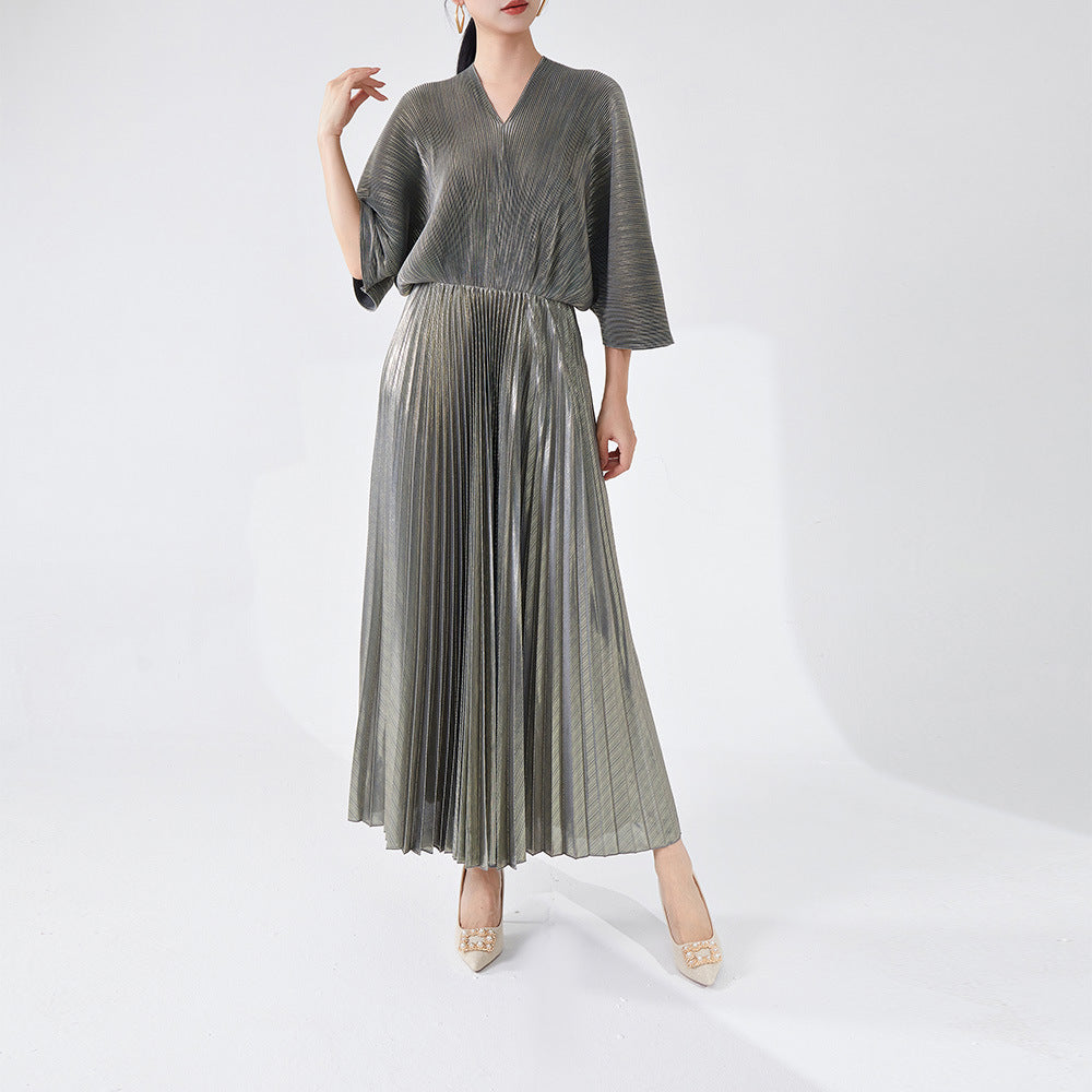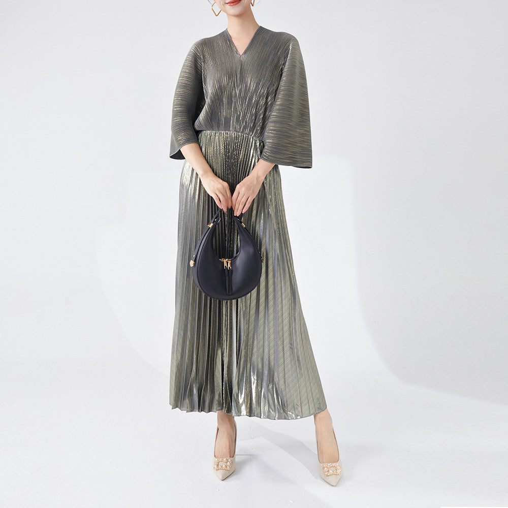 Women's Clothing V-neck Dress Fashion Bronzing Pleated